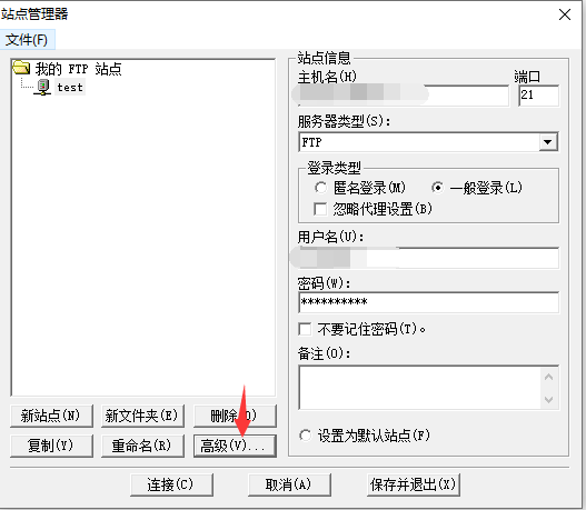 输入ftp的IP 账号密码,加密方式选择只使用普通ftp(不安全) ,然后连接即可。