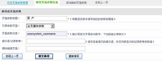 2.栏目页面参数中选择“页面参数标题名称” →打开“修改此页面参数” 在打开的管理页面可以对“页面参数信息”功能进行修改。